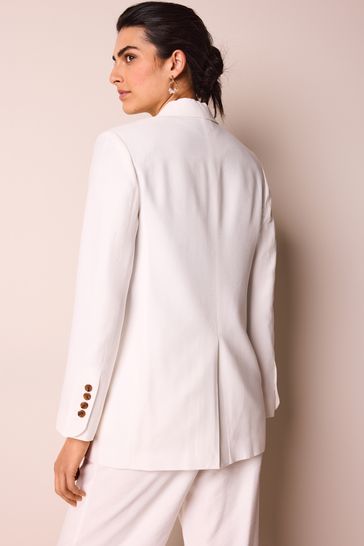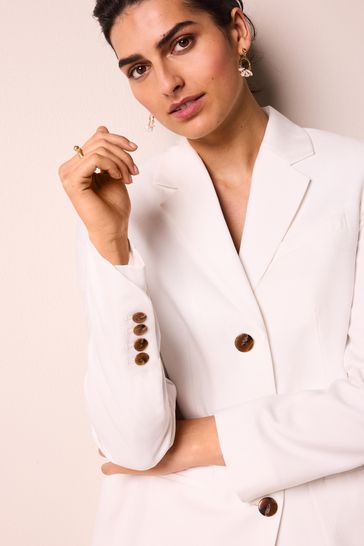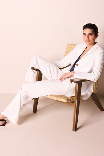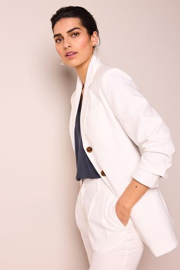 This stylish Suit is a longline style, made from a soft and lightweight fabric. Featuring three buttons down the centre front fastening. Functional jetted pockets finish the front design. Simply style with the matching wide leg trousers available, or with jeans.